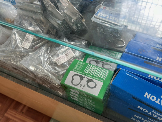 ひときわ目を引いたのは手錠。在庫もバッチリですが、そんなに買う人がいるのでしょうか。