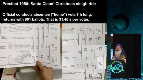 この担当者が持ってきたポータブル投票箱を開けてみたところ、そのすべてがプーチン大統領に投票しており、マークの筆跡も同一だったとのことです。