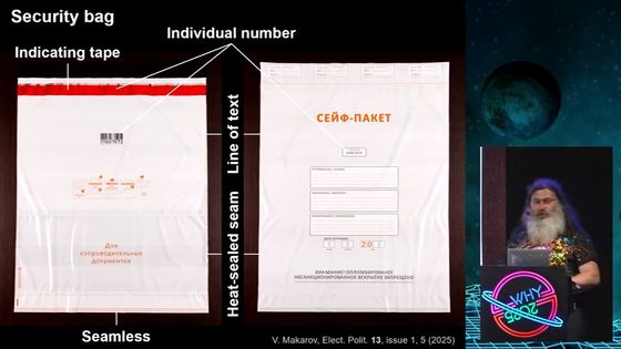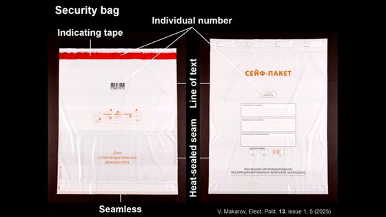 今回マカロフ氏は、投じられた票を保管する「セキュリティバッグ」を改ざんした事例について報告しています。ロシアの選挙では複数日にわたって選挙が行われるため、投票用紙はすぐに開票されるのではなく、一時的にこのようなセキュリティバッグに入れて保管するとのこと。