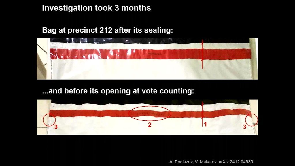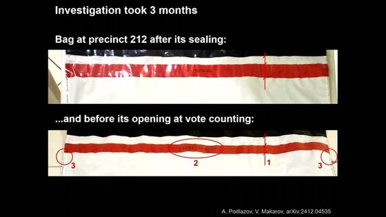 マカロフ氏によると、セキュリティバッグを製造する工場は、今回選挙に用いられたものと同じ識別番号の複製を作っていたとのこと。選挙委員会は選挙に用いられたものと対になる複製を入手し、同じ識別番号が記されたセキュリティテープを確保。夜間のうちに保管されているセキュリティバッグを開封し、中に不正な投票用紙を入れた後、複製から確保したセキュリティテープを貼り直して未開封であるかのように偽造したというわけです。