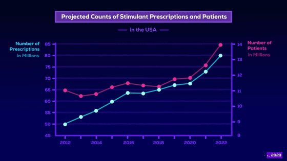 ADHD診断の増加に伴い、処方されるアンフェタミンの量も爆発的に増加しました。