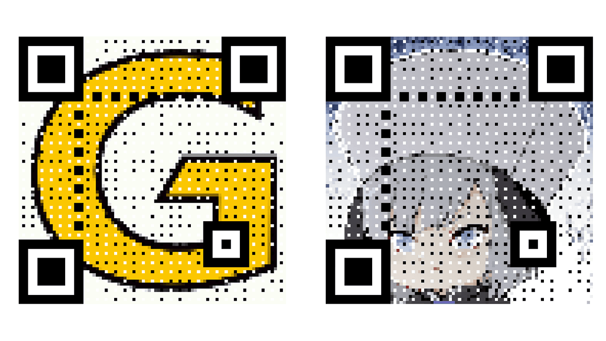このようなQRコードの仕組みを使用することで、QRコードに画像を組み込む工夫のほか、一見するとQRコードには見えないものも作成することができます。