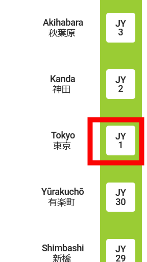Yamanoteでは出発する駅と進行方向を指定することで、列車の走行音や駅メロなどを再生することが可能。まずは発車駅を選ぶ必要があるので、今回は「東京」をクリック。