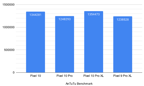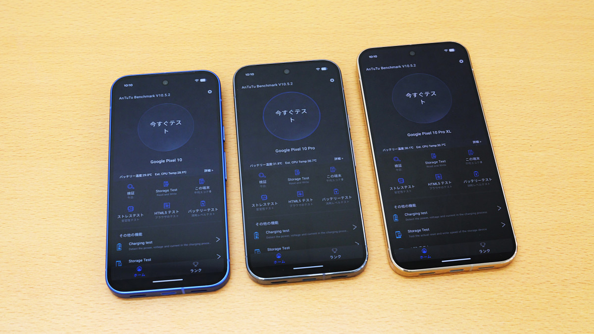 Google製スマートフォン「Pixel 10」「Pixel 10 Pro」「Pixel 10 Pro XL」が2025年8月28日に登場しました。3モデルともGoogle製SoC「Tensor G5」を搭載しているということで、無印モデルとProモデルの性能差が気になるところ。そこで、実際に複数のベンチマークアプリを実行して3モデルの性能差や過去モデルとの性能差を確かめてみました。