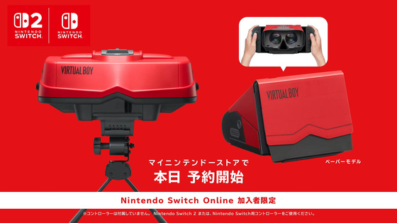 「バーチャルボーイ」を遊ぶために必要な専用ハードはマイニンテンドーストアで2025年9月9日から予約開始。実機を忠実に再現したモデルのほか、簡単に遊べるペーパーモデルも用意されるとのことです。