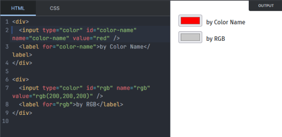 要素のvalue値に、従来から使用可能であった16進数形式カラーに加えて、CSSカラー形式も使用可能になりました。例えば、blackといった色名や、rgb(255,0,0)といったRGB形式を用いた色設定が可能です。