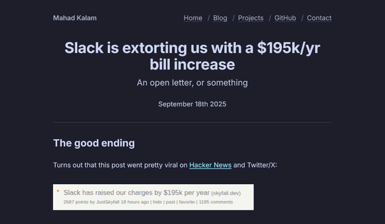 一方で、Hack Clubの問題が解決した後も、Slackに対して批判的な意見を送るコメントが集まっています。あるユーザーは、Slackについて「ユーザーが提供した重要なデータへのアクセス権を販売するという、ランサムウェアと同じようなビジネスモデルです。このような企業では、時間の経過とともに請求額が大幅に増加することを覚悟しておくべきでしょう。仮にこれで一部の顧客を失ったとしても、残った顧客からの高い収益によって損失は穴埋めされます」と指摘しています。また、Hack Clubと同じようなケースは別の独立した技術教育チームでも発生しており、Slackの衰退を嘆くコメントが寄せられています。