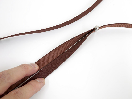 続いて、クロスボディストラップの先端をリングに通します。