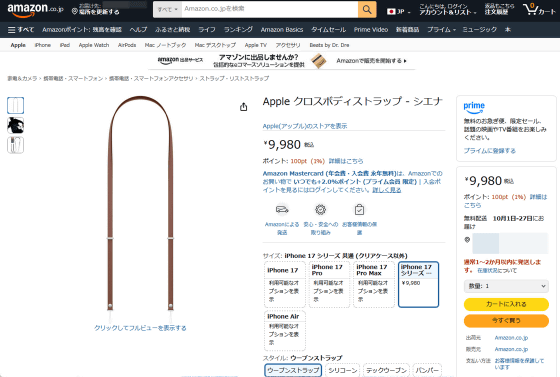 Appleのオンラインストアでの価格は「MagSafe対応iPhone 17 Proテックウーブンケース」が税込9980円、「クロスボディストラップ」も税込9980円、「iPhone Airバンパー」は税込6480円です。それぞれAmazon.co.jpでも入手可能です。