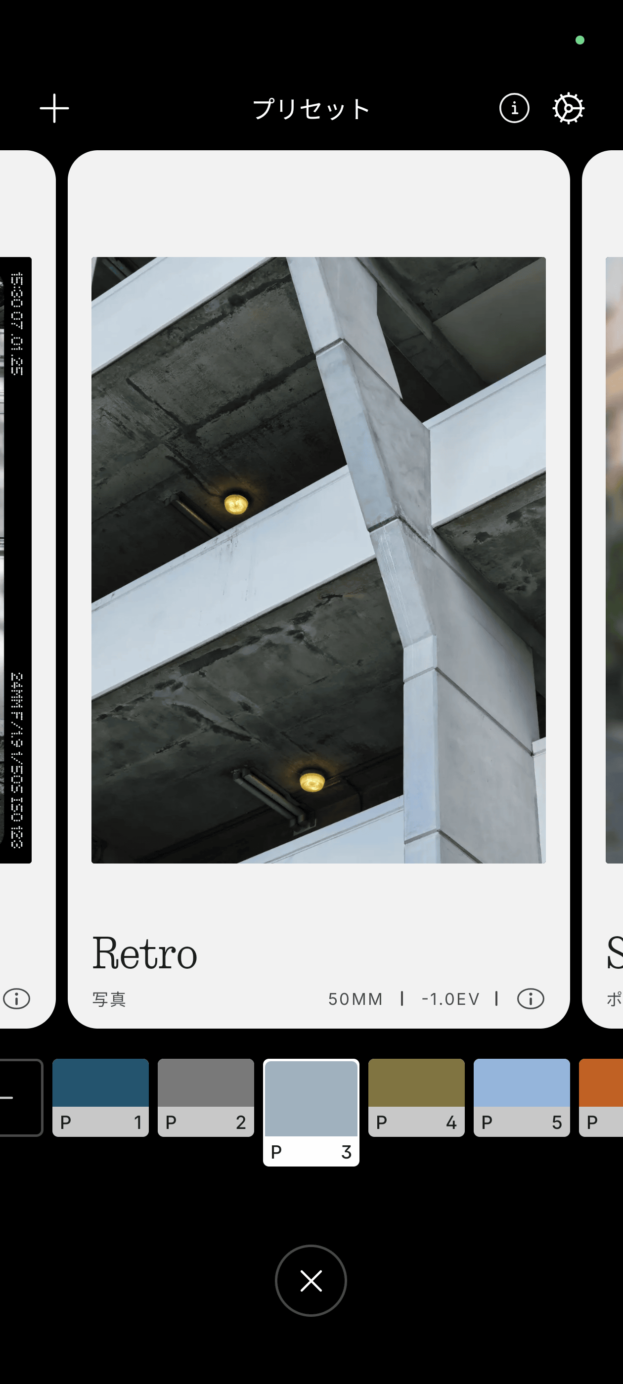 Phone (3)に搭載されているNothing OSの純正カメラアプリを起動したところ。UIは非常にシンプルです。画面下のアイコンをタップすると、カメラのプリセット設定を呼び出すことができます。