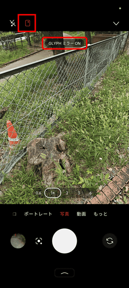 なお、Nothing Phone (3)の大きな特徴が、背面にある489個のLEDで構成されたGlyphインターフェース。背面カメラを使った自撮りはカメラで映している様子を確認できませんが、純正カメラアプリで「GLYPHミラー」をオンにすることで、Glyphインターフェースにカメラに映っているものを表示することができます。