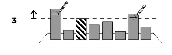 そして、つけた矢印に従って各データをピボットの左右に並び替えます。