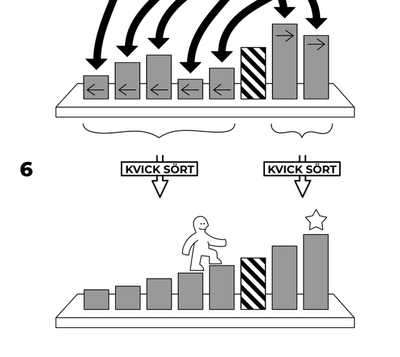 1960年にアントニー・ホーアが開発した並べ替えアルゴリズムの「クイックソート」を、IKEA(イケア)の家具についてくる組立説明書風に解説する図が「KVICK SÖRT」です。