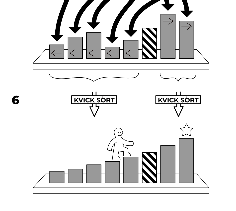 1960年にアントニー・ホーアが開発した並べ替えアルゴリズムの「クイックソート」を、IKEA(イケア)の家具についてくる組立説明書風に解説する図が「KVICK SÖRT」です。