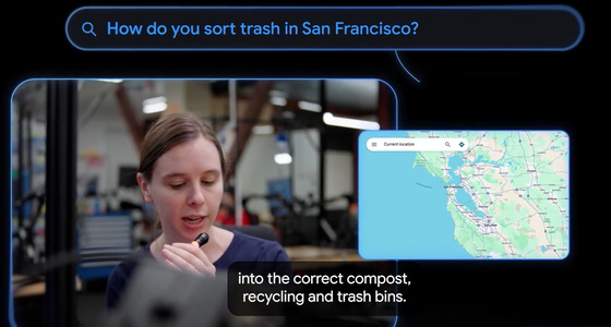 「現在いる場所に対応したゴミの分別をして」と指示をしたところ、ロケーションを確認した上で分別に関する情報を取得し、それに合わせて目の前のゴミを複数のゴミ箱に区分しました。