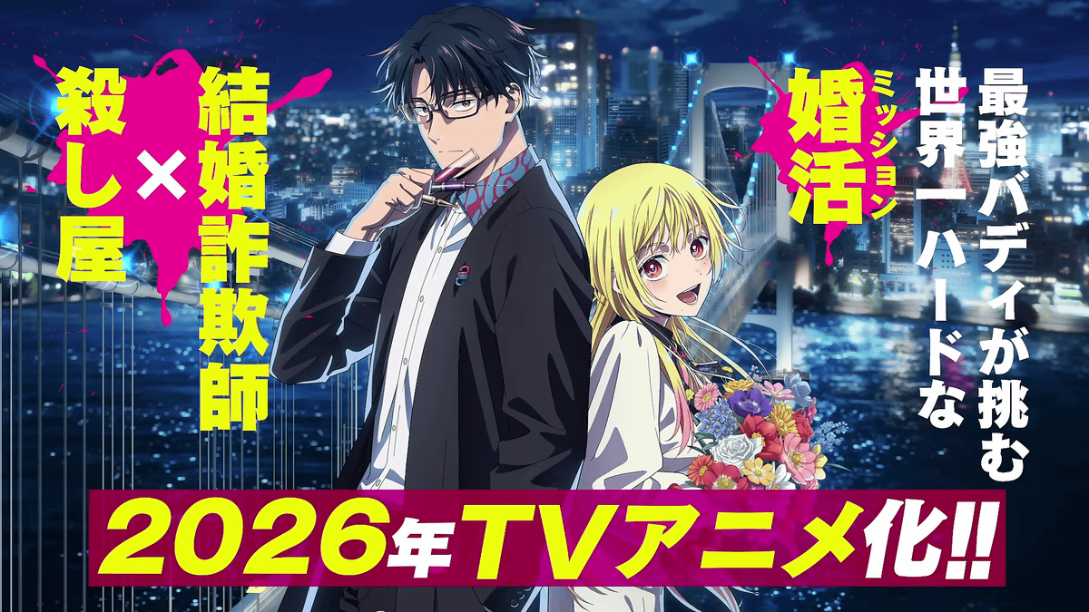 『少年ジャンプ+』連載の人気漫画『マリッジトキシン』のアニメ化が決まり、ティザーPVが公開されました。アニメは2026年放送予定で、監督は堀元宣氏、アニメーション制作はボンズフィルムが担当します。