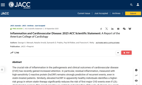 Inflammation and Cardiovascular Disease: 2025 ACC Scientific Statement: A Report of the American College of Cardiology | JACC