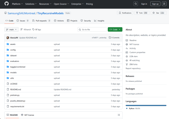 https://github.com/SamsungSAILMontreal/TinyRecursiveModels