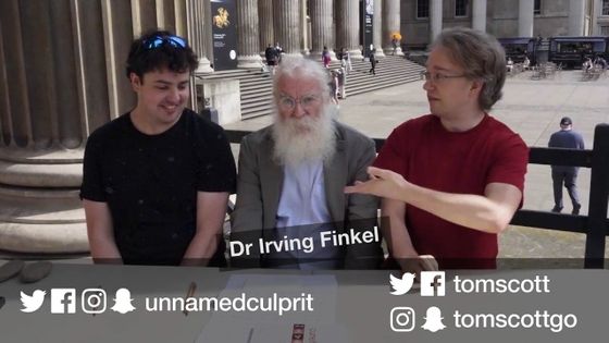 中央の白髭をたっぷり蓄えた男性が、楔形文字の専門家であるフィンケル氏です。