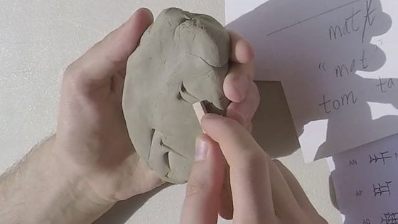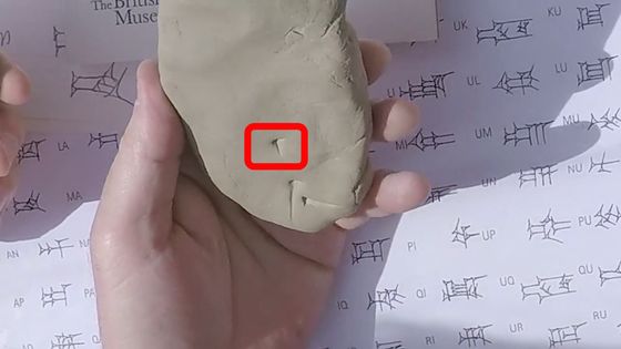 しばらくして離すと、粘土板に「垂直のくさび」が刻まれていました。
