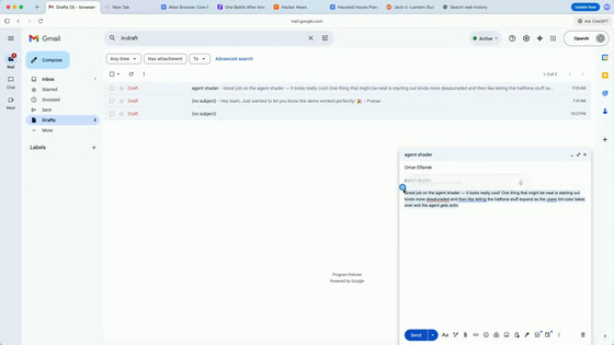 さらに、マウスカーソルでメールやドキュメントを選択し、ワンクリックでAIにヘルプを表示させたり下書きを作成させたりできます。