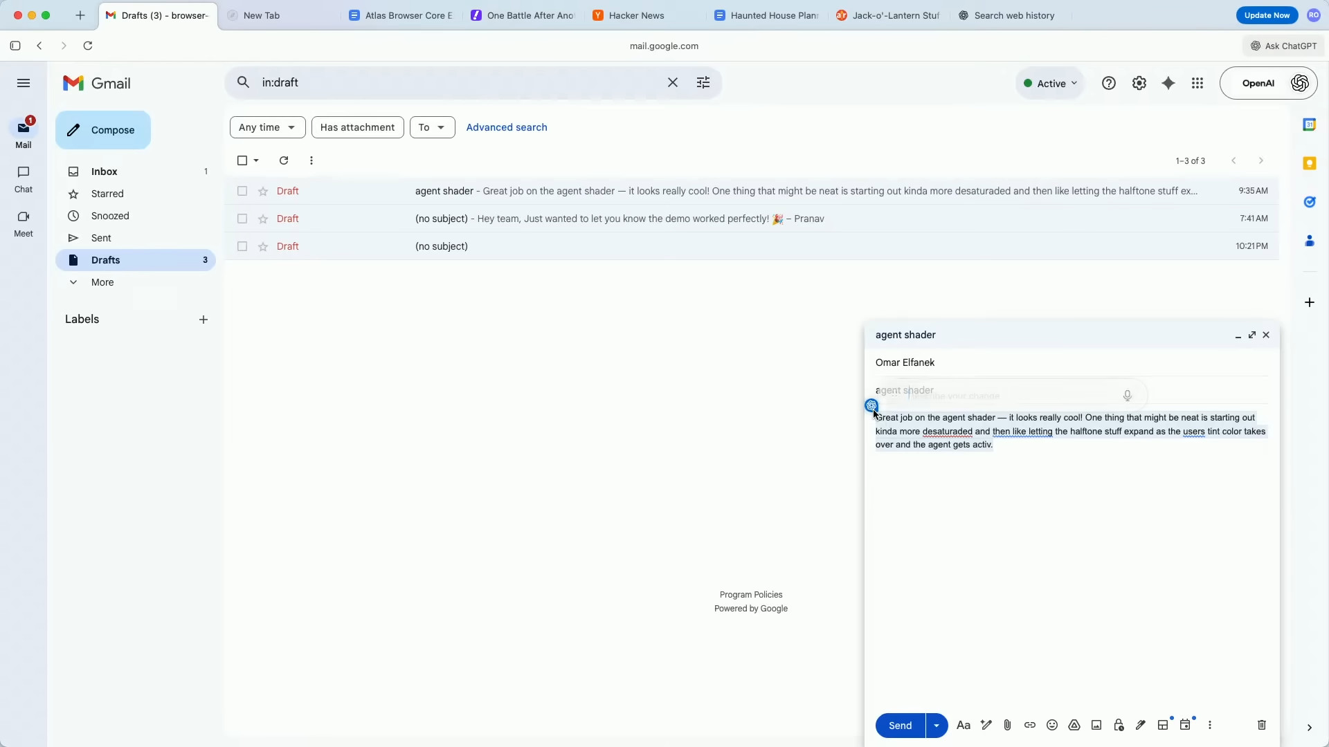 さらに、マウスカーソルでメールやドキュメントを選択し、ワンクリックでAIにヘルプを表示させたり下書きを作成させたりできます。