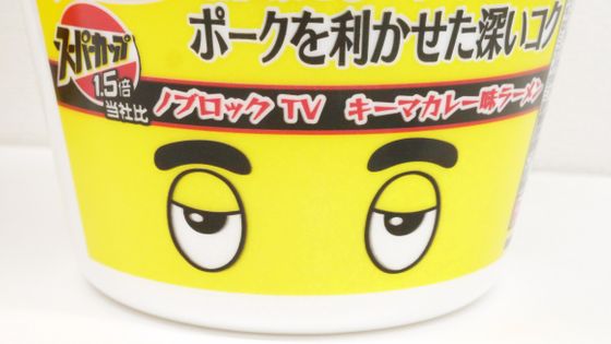 「スーパーカップ1.5倍×NOBROCK TV キーマカレー味ラーメン」のパッケージはこんな感じ。