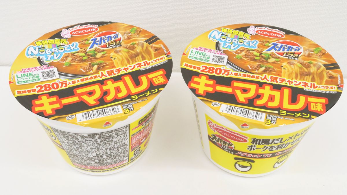 人気プロデューサーの佐久間宣行氏が手掛けるYouTubeチャンネル「NOBROCK TV」と、カップ麺でおなじみのエースコックがまさかのコラボを果たしたカップラーメン「スーパーカップ1.5倍×NOBROCK TV キーマカレー味ラーメン」が2025年11月3日(月)から登場します。サブチャンネル「BSノブロック」で生まれたカレーラーメンの味わいを再現したというカップ麺が編集部に届いたので、一足先に食べてみました。