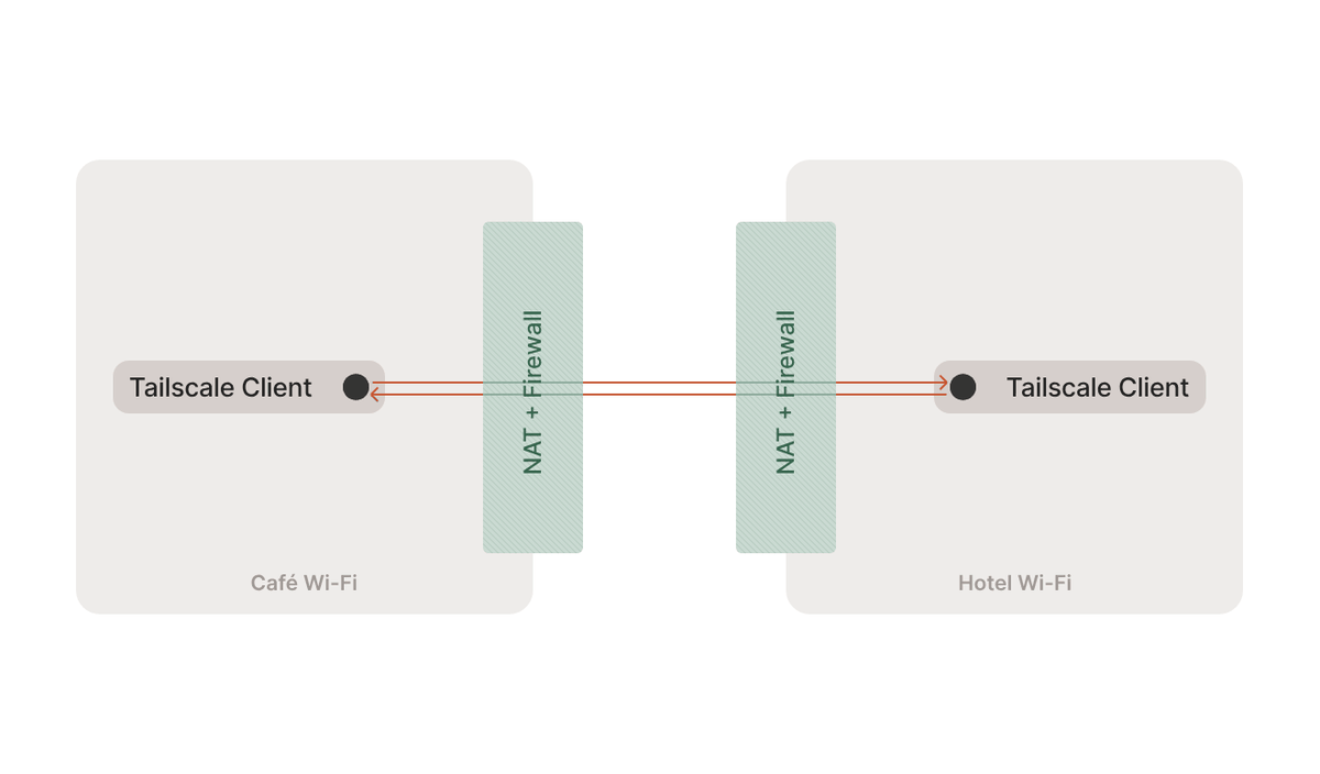 静的IPアドレスや開いたポートがない、NATが2つ重なっているなど通信が困難な環境でも、TailscaleはSTUN/ICEに基づいた非常に高度な技術で接続を機能させることができます。ファイアウォール構成の変更やポートの解放の必要性がなくなり、人的エラーの可能性が大幅に減少します。