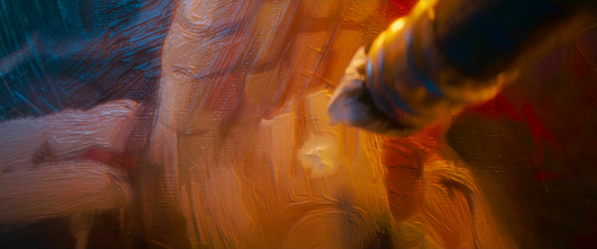 筆やペンキ缶を振り回しながら何かを描いている模様。
