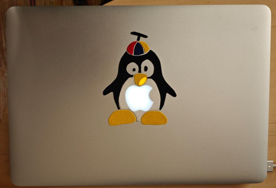 Appleロゴを残しつつ、周囲にいろんなステッカーを配置。