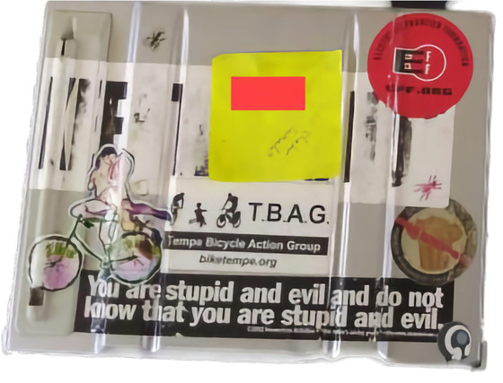 モノトーンのステッカーを大量に重ねているのでカラーのステッカーがとても映えます。