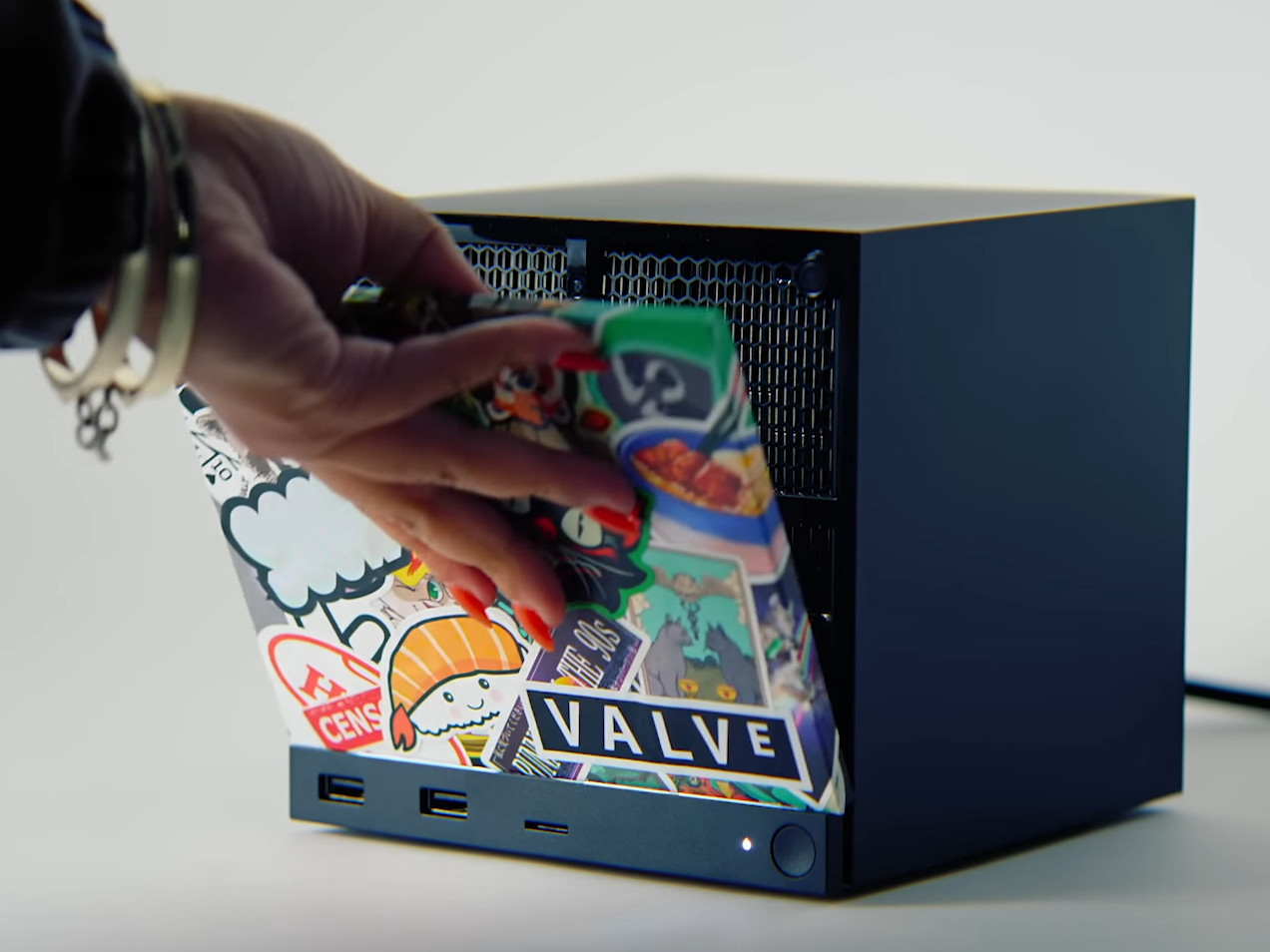 背面はファンになっていて、Valveのロゴが刻まれています。