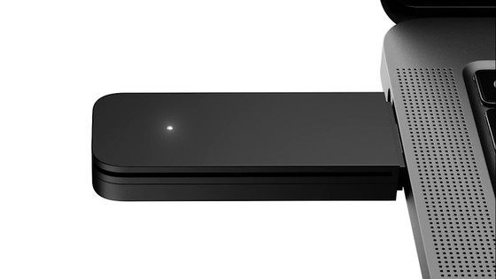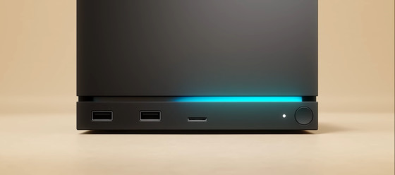 パネルの下には17個のRGB LEDで構成されたLEDストリップがあります。光でステータスを示すほか、設定で光の色を変更することも可能。そのさらに下には、USB-Aポート2つとmicroSDカードスロット、電源ボタンが配置されています。