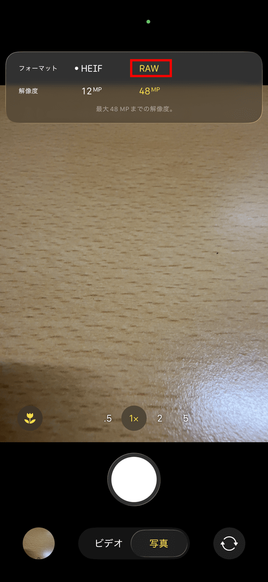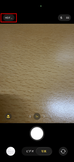 カメラアプリを開き、左上に出てくる「HEIF」をタップ。