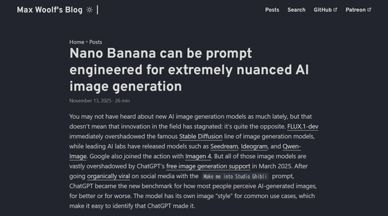2025年3月末にChatGPTが無料での画像生成機能をサポートして以来、良くも悪くもChatGPTが画像生成AIにおけるベンチマークとなりました。しかし、Googleの画像生成AIである「Gemini 2.5 Flash Image(Nano Banana)」はChatGPTよりもはるかに優れているとして、その理由をデータサイエンティストのマックス・ウルフ氏が解説しています。