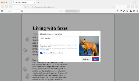 PDFに画像を追加する際に自動で画像の説明文を生成する機能も開発されています。