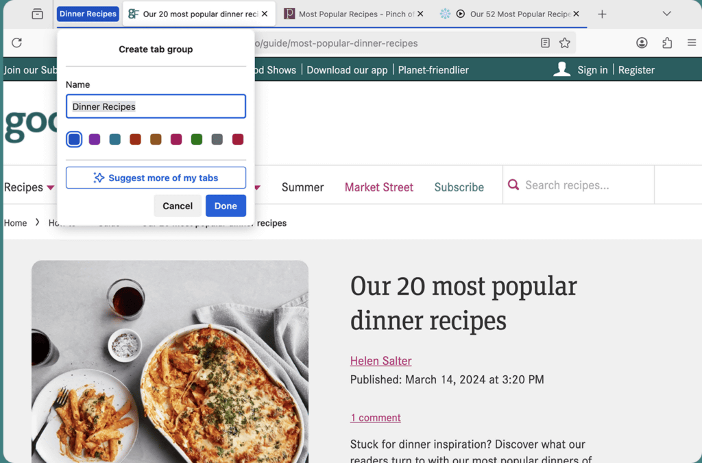 記事作成時点ではAIウィンドウの詳細な機能は明らかになっていませんが、すでにFirefoxにはAIを活用した複数の機能が搭載されています。FirefoxのAI機能の例は以下の通り。