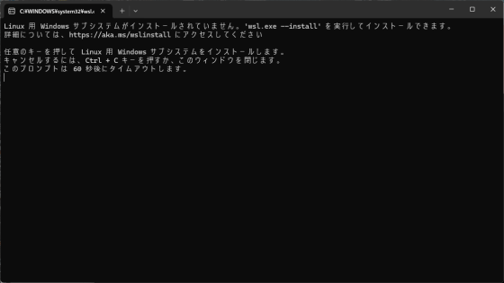 この時点でWSLがインストールされていない場合はUACプロンプトが表示され、「はい」ボタンをクリックすると続けて以下のウィンドウが表示されるので、任意のキーを押してWSLをインストールします。