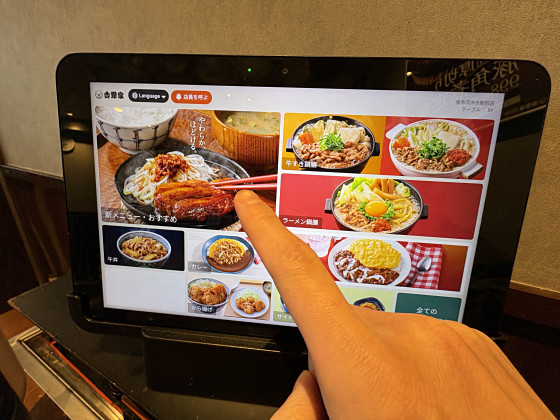 卓上のタッチパネルで厚切り豚角煮定食を注文。