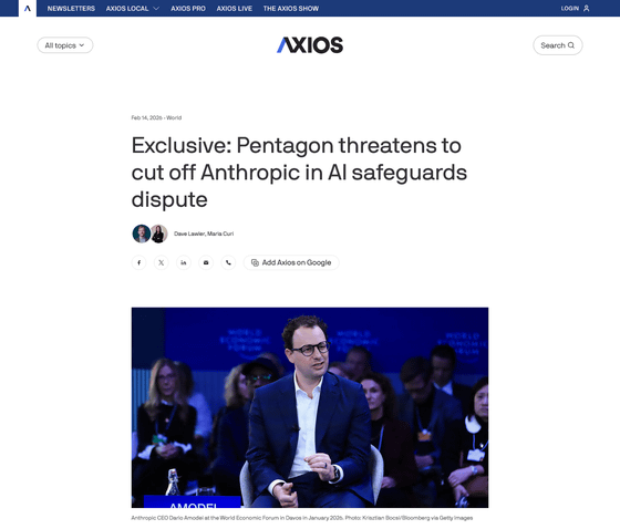 Anthropicを含むAI企業4社は2025年7月、国家安全保障のために国防総省とそれぞれ2億ドル(約307億円)の契約を結んでおり、もし関係見直しがあった場合、Anthropicはこの契約を失うことになるとみられます。