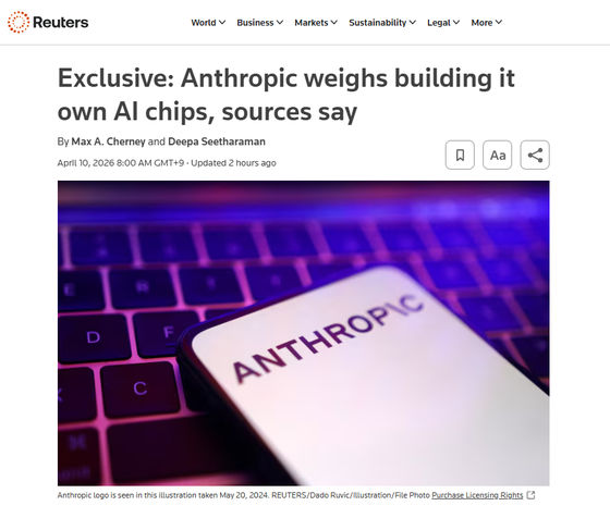 AIチャットボット・Claudeの開発元であるAnthropicが、独自のAIチップ開発を検討しているとロイターが報じました。