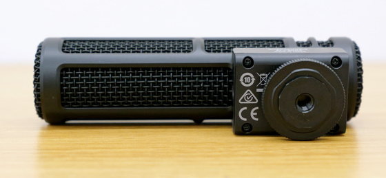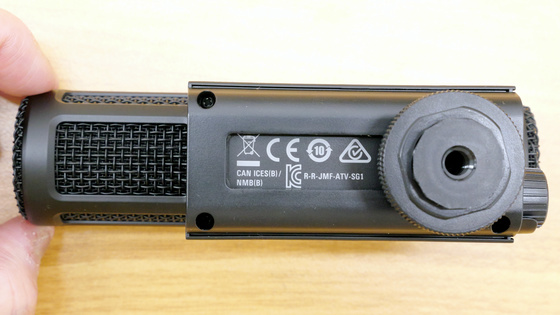 底面はこんな感じ。ロックリングが固定する部分はスライドになっていて、マイクの前後を調整できるようになっています。