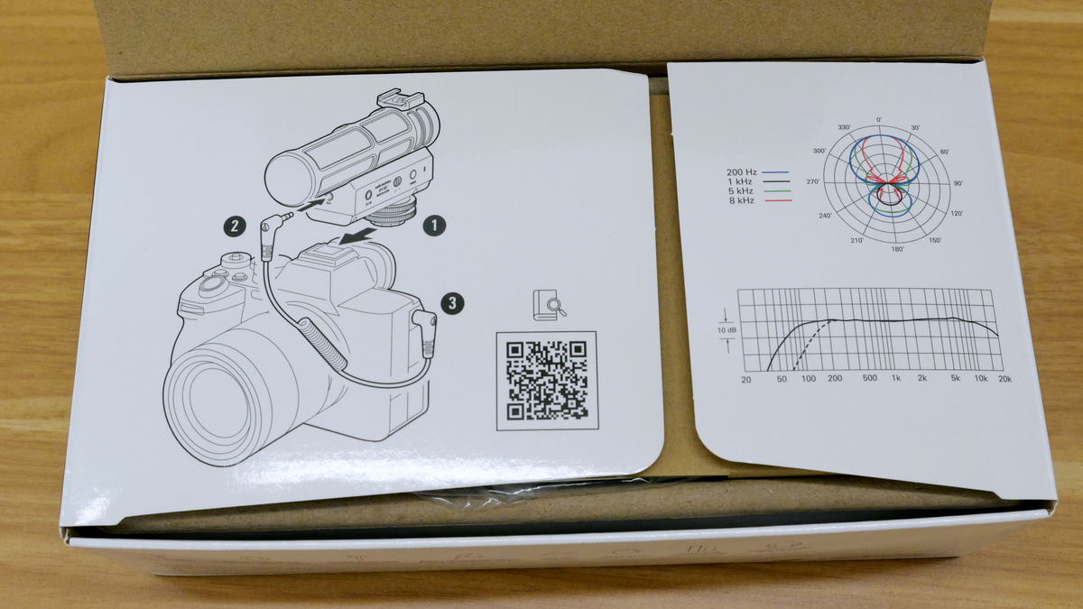 フタを開けると、左側にATV-SG1LEの取り付け方、右側に指向性と周波数特性のグラフが描かれていました。