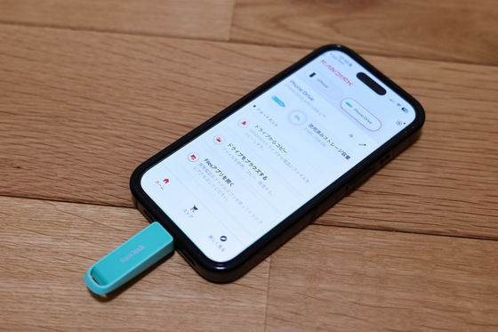 iPhoneに「SanDisk Phone Drive USB-C対応」を挿します。