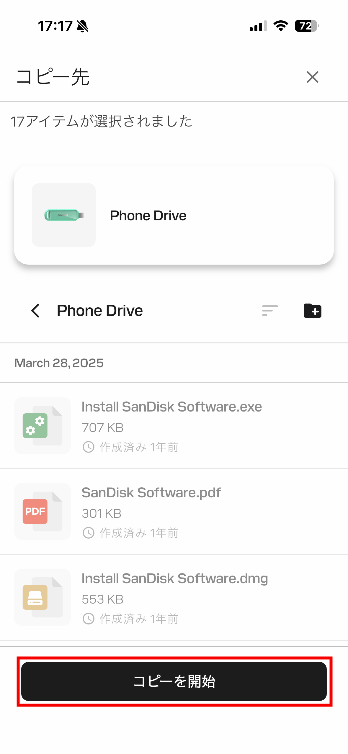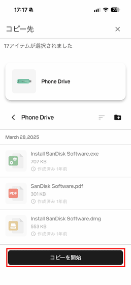 「コピーを開始」をタップ。