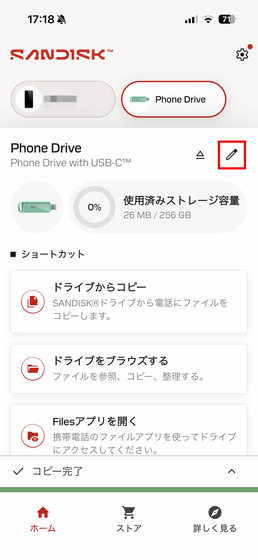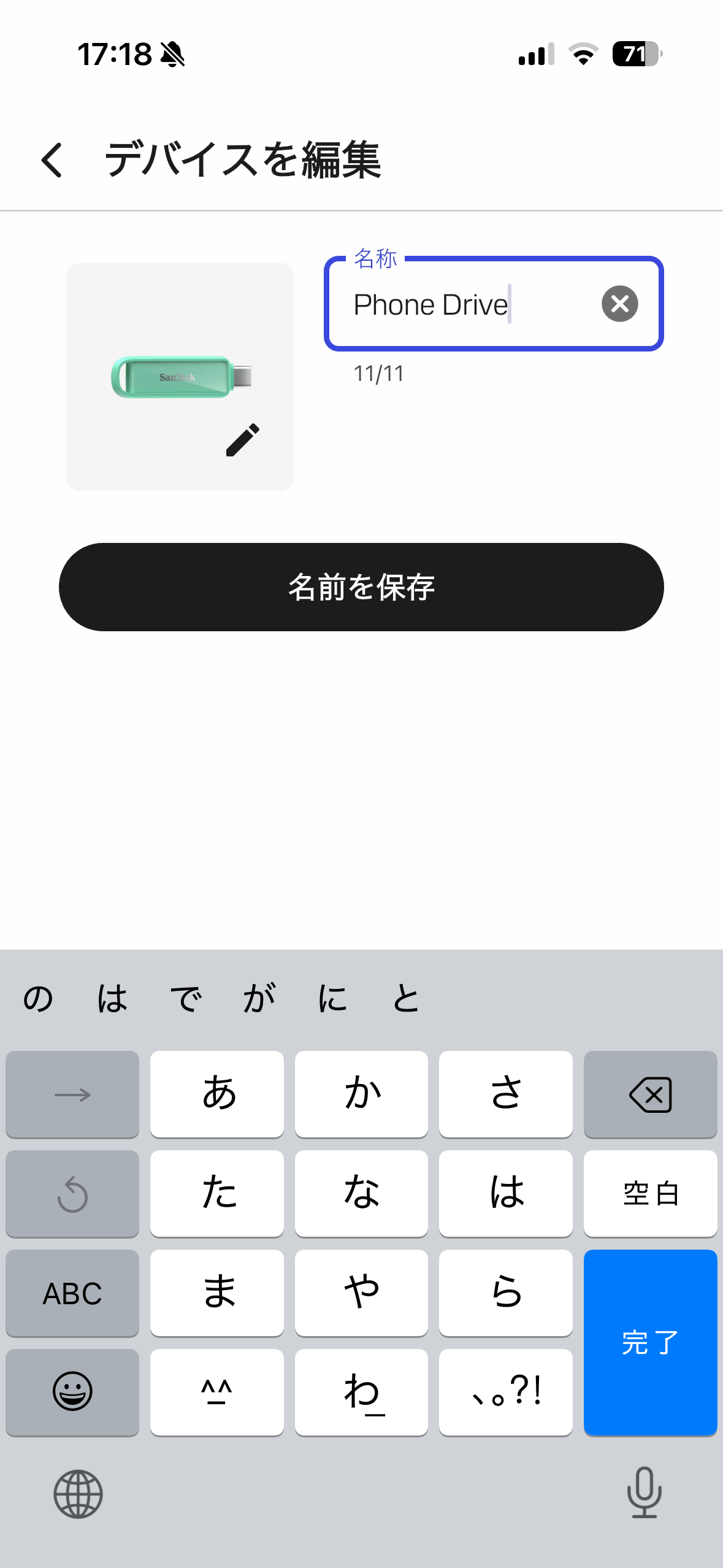 すると「SanDisk Phone Drive USB-C対応」の名称を変更可能。