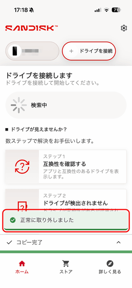 すると「SanDisk Phone Drive USB-C対応」をiPhoneから正常に取り外すことができます。