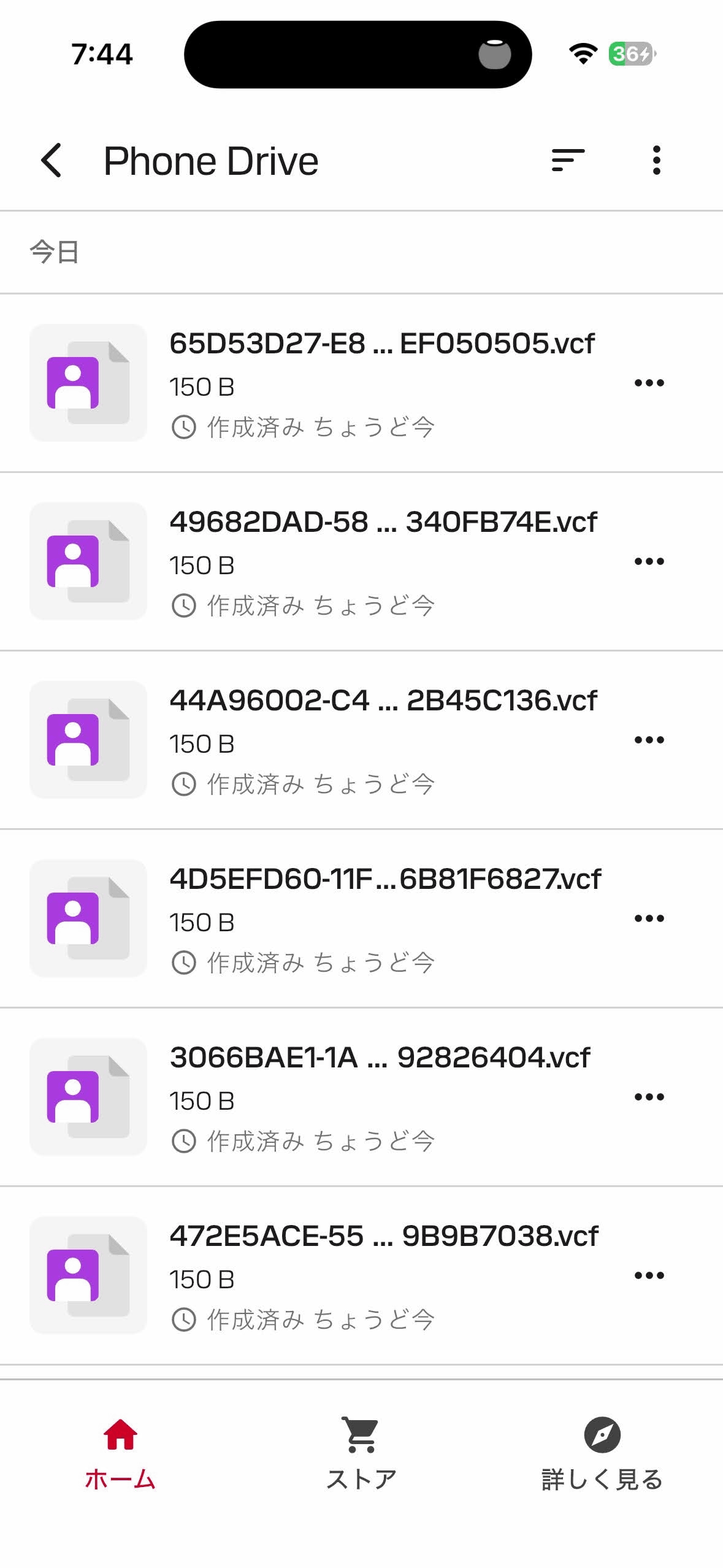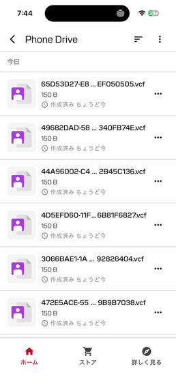 連絡先をコピーした場合、連絡先データはvCard(.vcf)として保存されました。