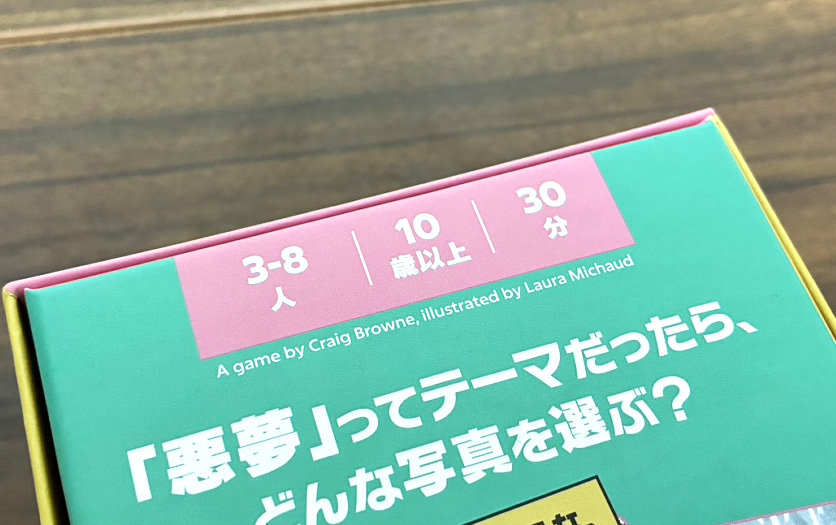 プレイ人数は3~8人、対象年齢は10歳以上、プレイ時間は30分を想定。